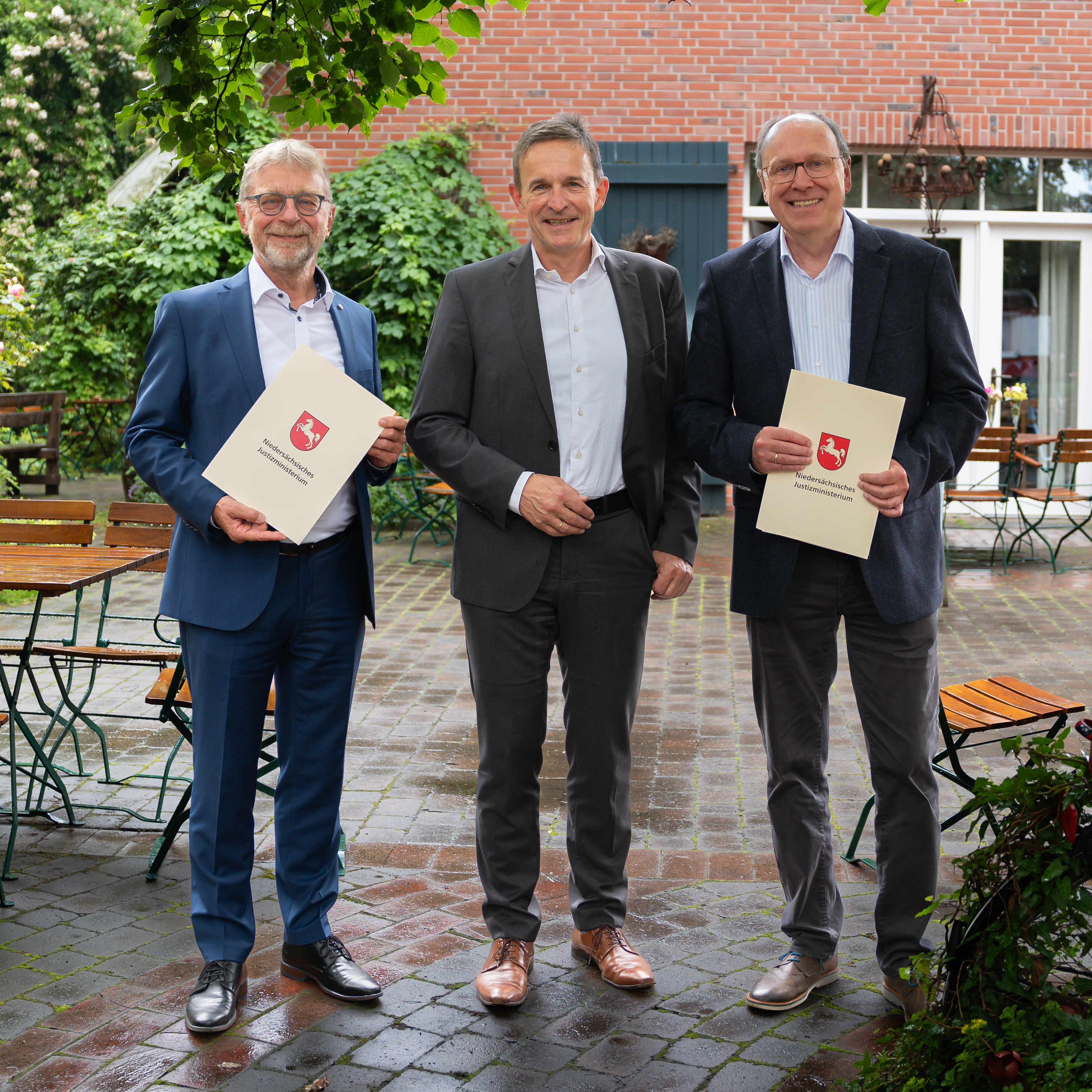 Mit dem Eintritt in seinen Ruhestand mit Ablauf des 30. Juni 2024 ist der bisherige Direktor des Arbeitsgericht Christoph Schmedt durch den Präsidenten des Landesarbeitsgerichts Wilhelm Mestwerdt verabschiedet und zugleich mit Wirkung zum 1. Juli 2024 Thomas Schrader als neuer Direktor des Arbeitsgerichts Lingen (Ems) in sein Amt eingeführt worden. Christoph Schmedt wurde nach seinem Studium der Rechtswissenschaften an der Universität Osnabrück und dem anschließenden Referendariat am 01.10.1991 als Richter in der Arbeitsgerichtsbarkeit eingestellt. Seine richterliche Tätigkeit nahm er beim Arbeitsgericht Braunschweig auf. Nach einer Zwischenstation beim Arbeitsgericht Nienburg war Herr Schmedt seit dem 12.06.1995 als Richter am Arbeitsgericht Lingen (Ems) tätig und wurde nach erfolgreicher Erprobung beim Landesarbeitsgericht Niedersachsen im Juni 2006 zum Direktor des Arbeitsgerichts Lingen (Ems) ernannt. Herr Schmedt war in der Arbeitsgerichtsbarkeit über einen Zeitraum von mehr als 15 Jahren Arbeitsgemeinschaftsleiter in Hannover für die Referendare im Arbeitsrecht und zudem als Intervisor für die Proberichter tätig. Das Arbeitsgericht Lingen (Ems) wünscht seinem scheidenden Direktor alles Gute, vor allem Gesundheit für seinen nunmehr beginnenden Ruhestand. Thomas Schrader, geboren am 11.04.1959 im westfälischen Rheda, studierte nach dem Abitur von 1980 bis 1986 Rechtswissenschaft an der Universität Münster (WWU). Nach seinem Referendariat und kurzer Anwaltschaft in Hamburg trat Schrader zum 01.05.1990 in die Arbeitsgerichtsbarkeit des Landes Niedersachsen ein. Seine erste Stelle als Richter führte Thomas Schrader an das Arbeitsgericht Osnabrück. Herr Schrader wurde hier im Juni 1993 zum Richter auf Lebenszeit ernannt. Neben einer Abordnung an die Arbeitsgerichte Lingen und Lüneburg wurde Herr Schrader von Juli 2006 bis März 2007 als wissenschaftlicher Mitarbeiter an das Bundesarbeitsgericht in Erfurt abgeordnet. Am 22.01.2015 wurde Herr Schrader zum stellvertretenden Direktor des Arbeitsgerichts Osnabrück ernannt. Darüber hinaus oblagen ihm die Aufgaben als Pressesprecher des Arbeitsgericht Osnabrück. Zusätzlich nahm Herr Schrader die Aufgaben als zertifizierter Mediator in der Funktion des Güterichters für die Arbeitsgerichte Osnabrück und Lingen (Ems) sowie für weitere Arbeitsgerichte im nordwestdeutschen Raum wahr. Das Arbeitsgericht Lingen (Ems) residiert in Lingen, Am Wall Süd 18 und zählt zu den mittelgroßen Arbeitsgerichten in Niedersachsen. Das Arbeitsgericht Lingen (Ems) ist zuständig für Arbeitsrechtsstreitigkeiten von Arbeitnehmern und Arbeitgebern, sowie für betriebsverfassungs- und personalvertretungsrechtliche Streitigkeiten aus Betrieben und Verwaltungen in den Landkreisen Emsland und der Grafschaft Bentheim und damit für deren ca. 470.000 Einwohner. Neben seiner richterlichen Tätigkeit obliegt Herrn Thomas Schrader auch die Aufgabe als Behördenleiter für die Mitarbeitenden. |